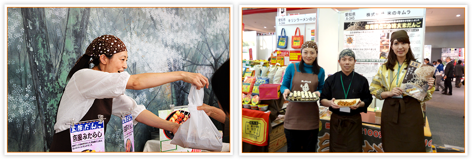移動車、スーパー、デパート、道の駅、飲食店など、どのような場所でも健康によい「玄米だんご」は大人気商品!