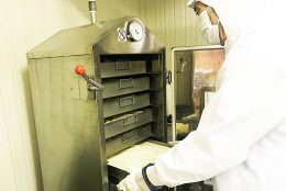 最後に、仕上がった玄米の生地を団子の自動成型機にて団子の形にします。こうして完成したのが、他にはない、炊いた玄米から作った自慢の玄米だんごです。