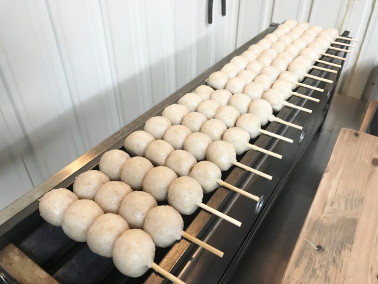 ②だんごの両面を焦げ色が付くまでしっかりと焼きます。