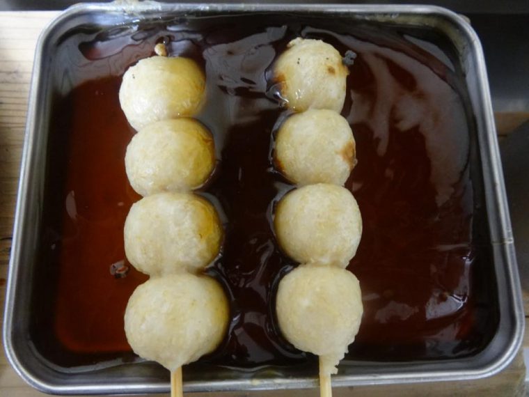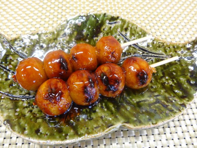 いそべ焼だんご焼醤油だんごに海苔をトッピング。