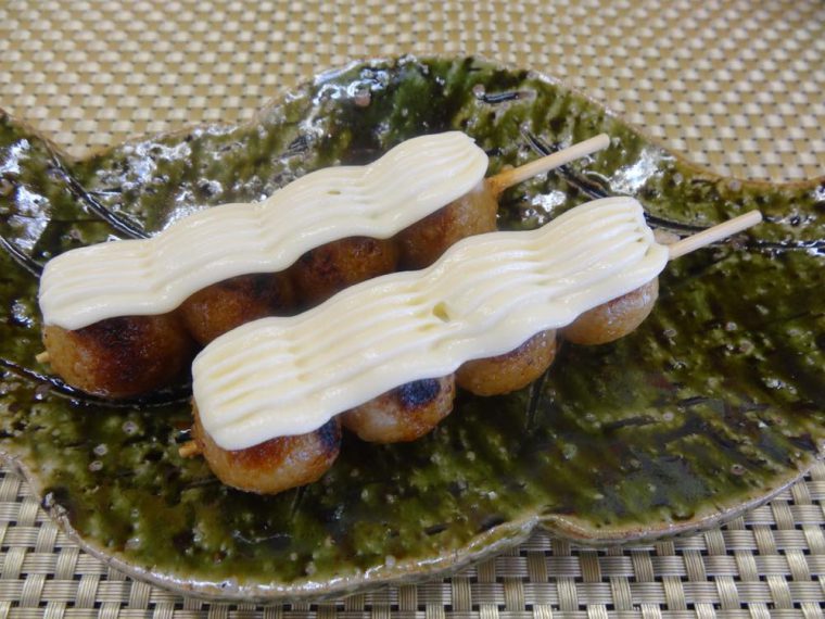 クリームチーズ焼醤油だんごにクリームチーズをトッピング。